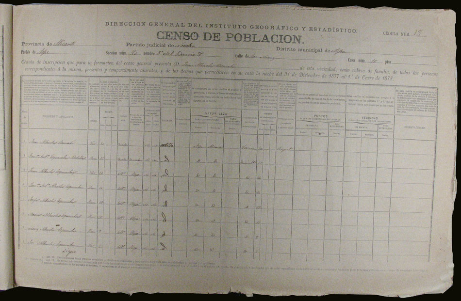 Hojas declaratorias por familias y Padrón de habitantes, 1877