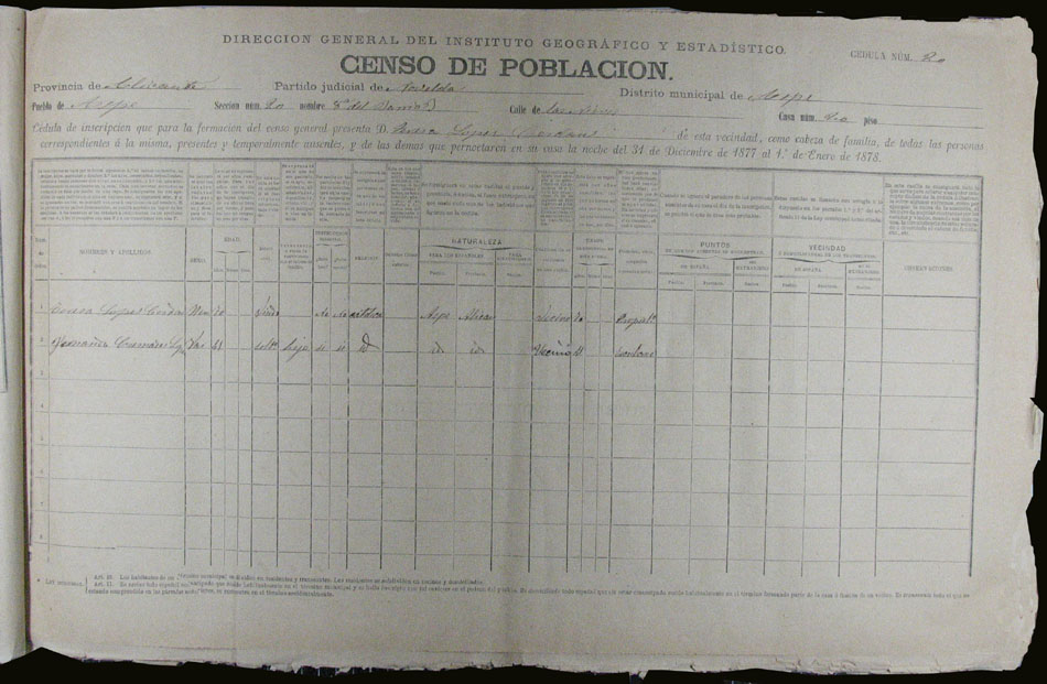 Hojas declaratorias por familias y Padrón de habitantes, 1877