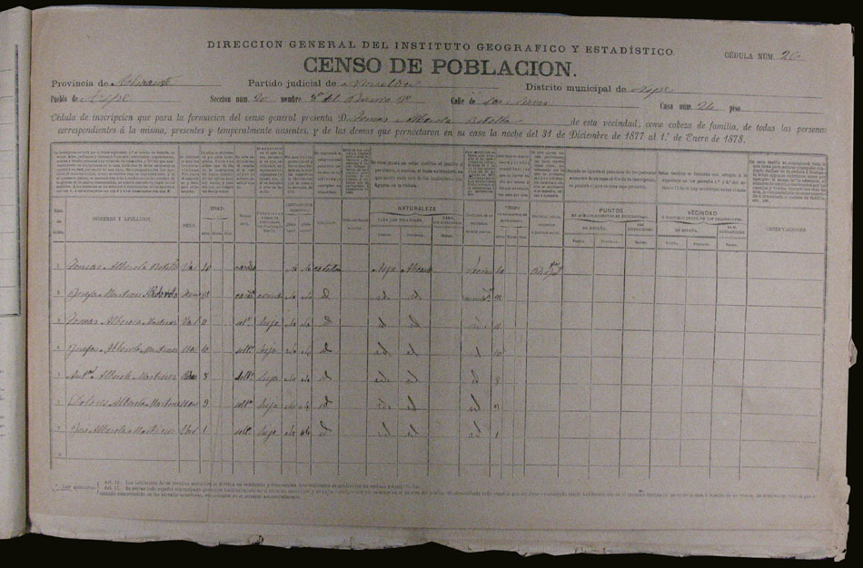 Hojas declaratorias por familias y Padrón de habitantes, 1877