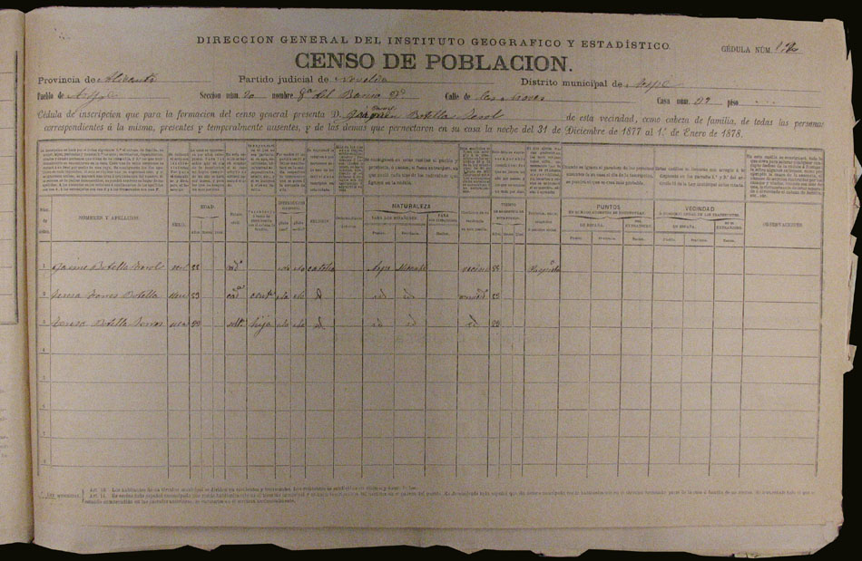 Hojas declaratorias por familias y Padrón de habitantes, 1877