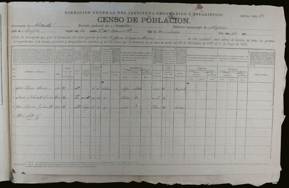 Hojas declaratorias por familias y Padrón de habitantes, 1877