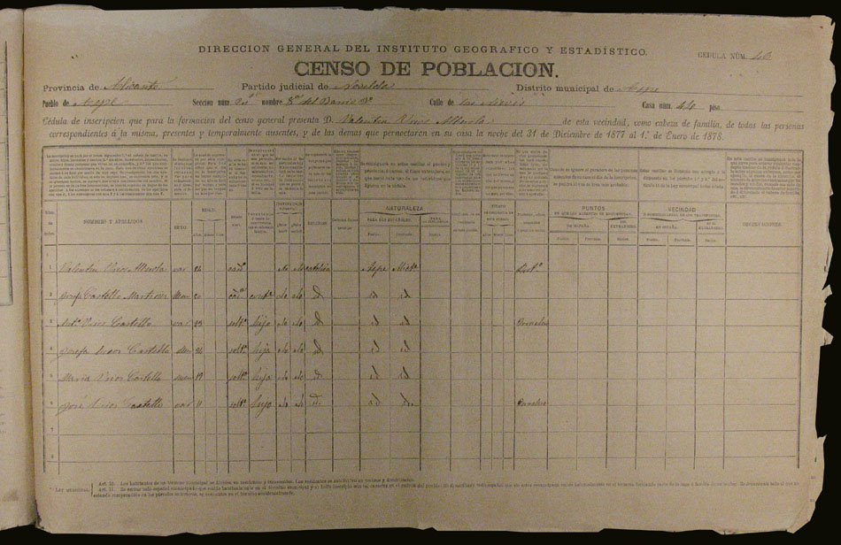 Hojas declaratorias por familias y Padrón de habitantes, 1877