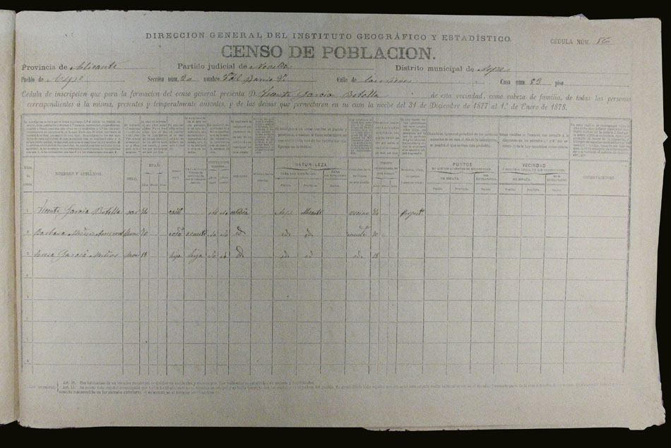 Hojas declaratorias por familias y Padrón de habitantes, 1877