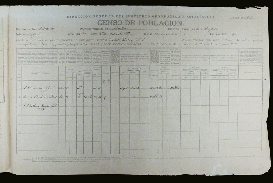 Hojas declaratorias por familias y Padrón de habitantes, 1877
