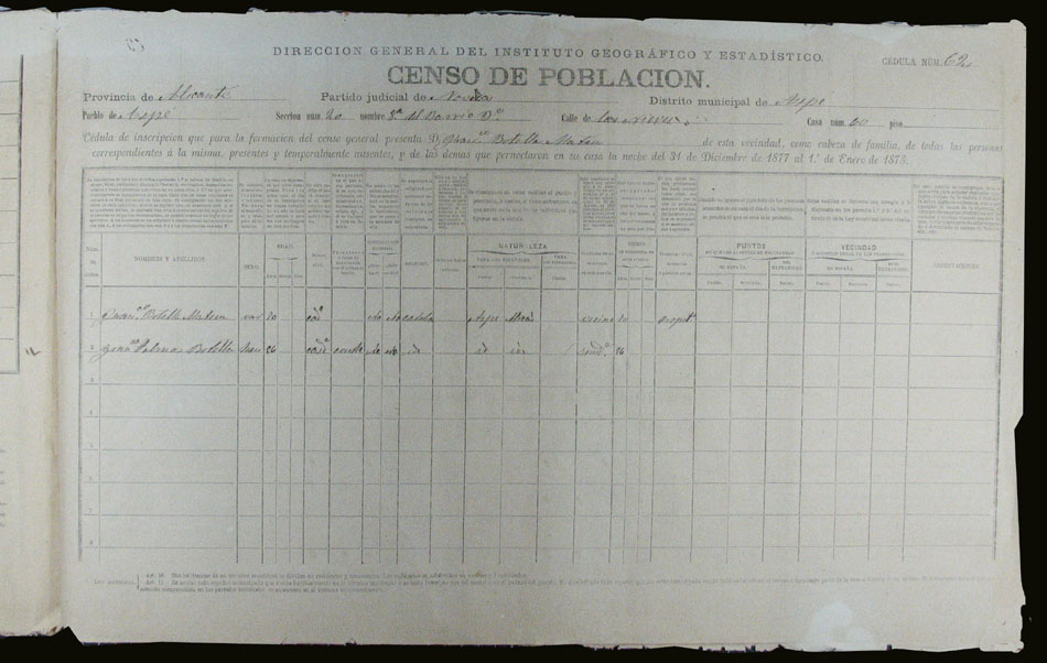 Hojas declaratorias por familias y Padrón de habitantes, 1877