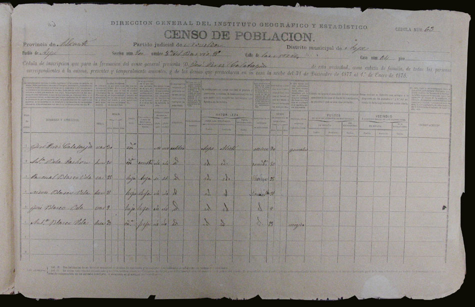 Hojas declaratorias por familias y Padrón de habitantes, 1877