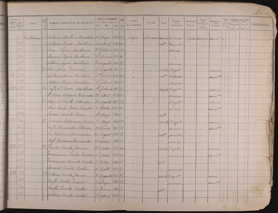 Hojas declaratorias por familias y Padrón de habitantes, 1877