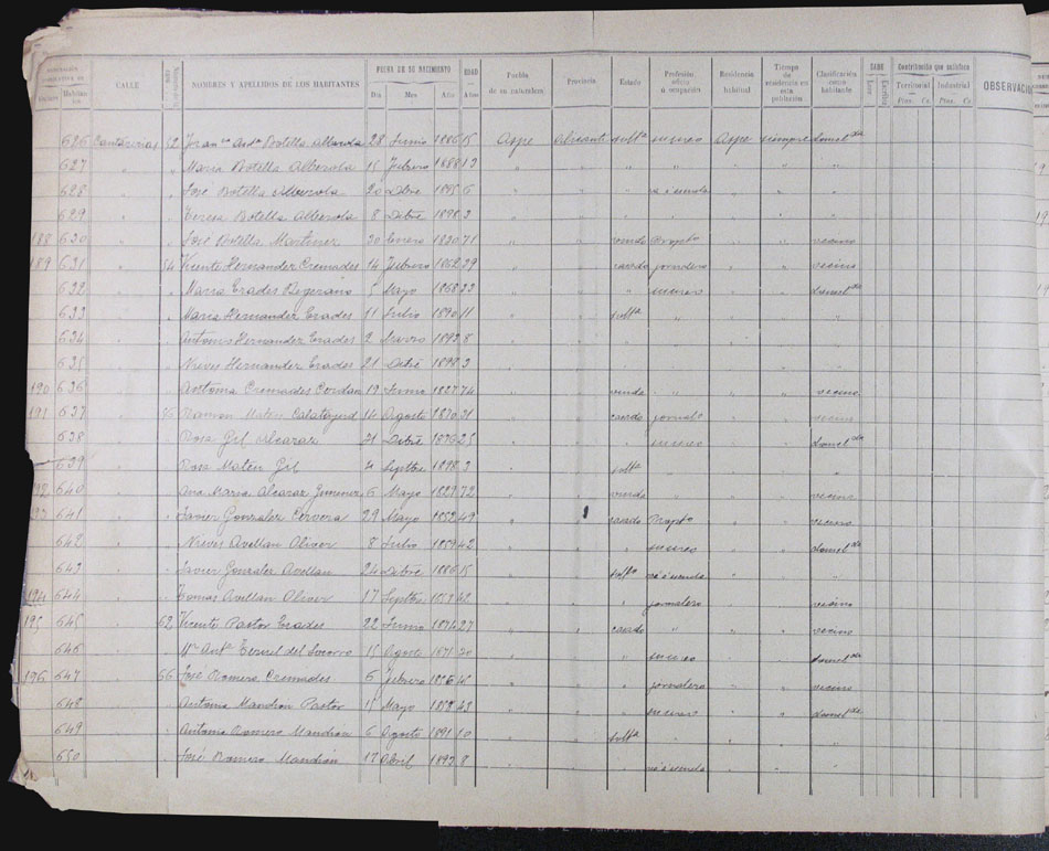 Hojas declaratorias por familias y Padrón de habitantes, 1877