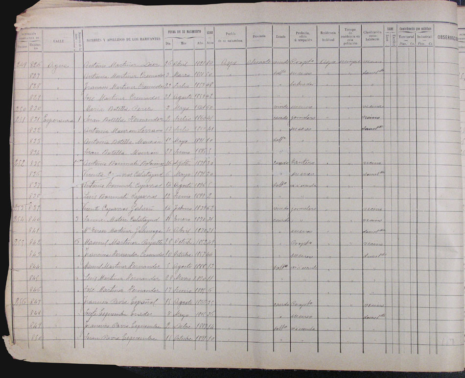 Hojas declaratorias por familias y Padrón de habitantes, 1877