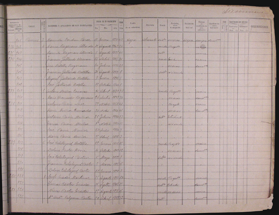 Hojas declaratorias por familias y Padrón de habitantes, 1877