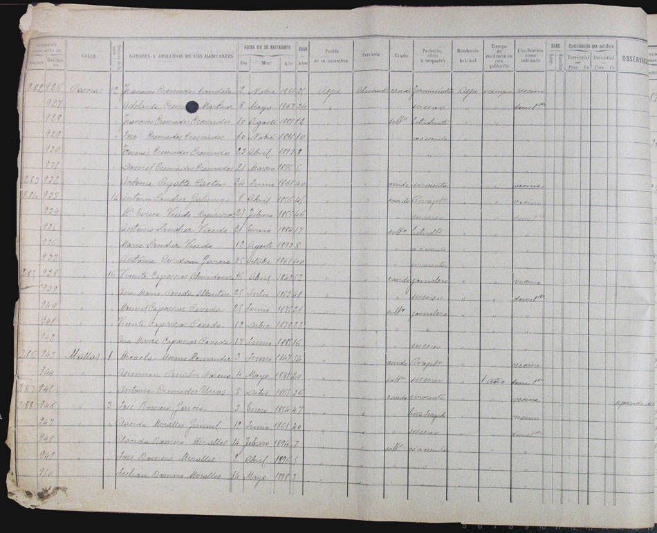 Hojas declaratorias por familias y Padrón de habitantes, 1877