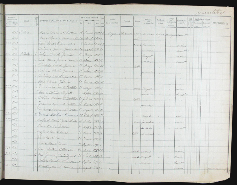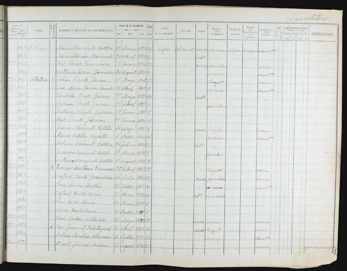 Hojas declaratorias por familias y Padrón de habitantes, 1877