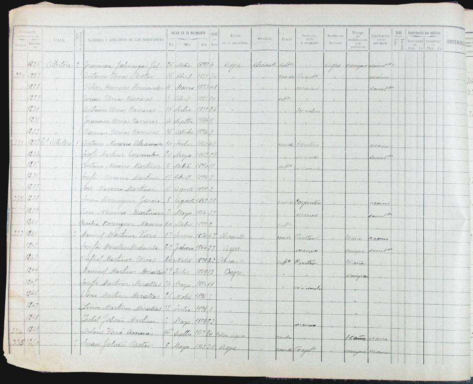 Hojas declaratorias por familias y Padrón de habitantes, 1877