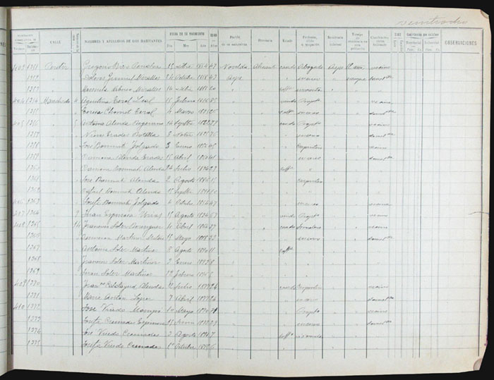 Hojas declaratorias por familias y Padrón de habitantes, 1877
