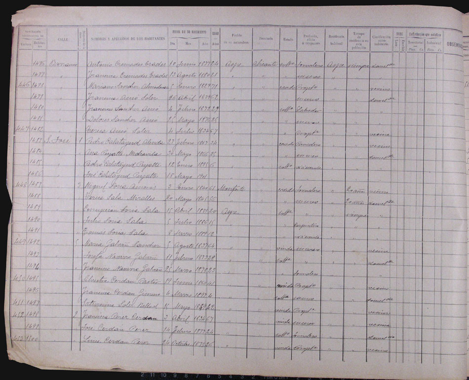 Hojas declaratorias por familias y Padrón de habitantes, 1877