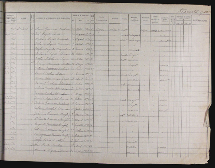Hojas declaratorias por familias y Padrón de habitantes, 1877
