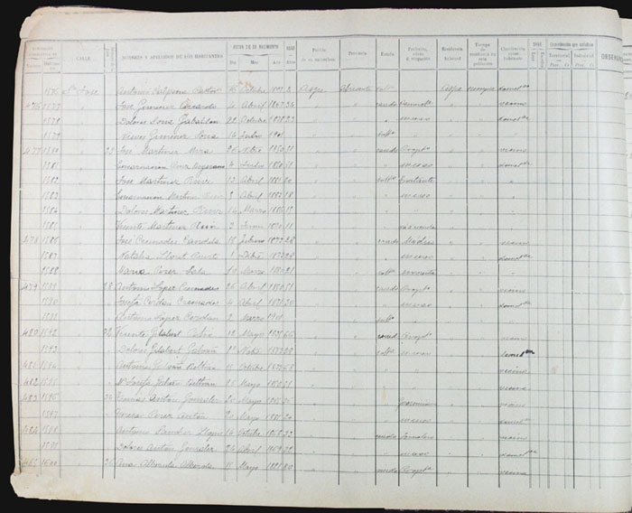 Hojas declaratorias por familias y Padrón de habitantes, 1877