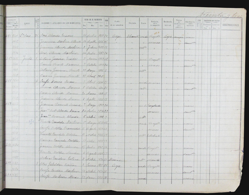 Hojas declaratorias por familias y Padrón de habitantes, 1877
