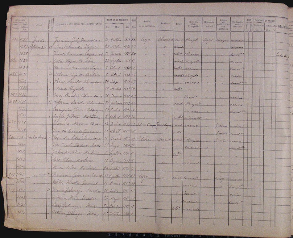 Hojas declaratorias por familias y Padrón de habitantes, 1877