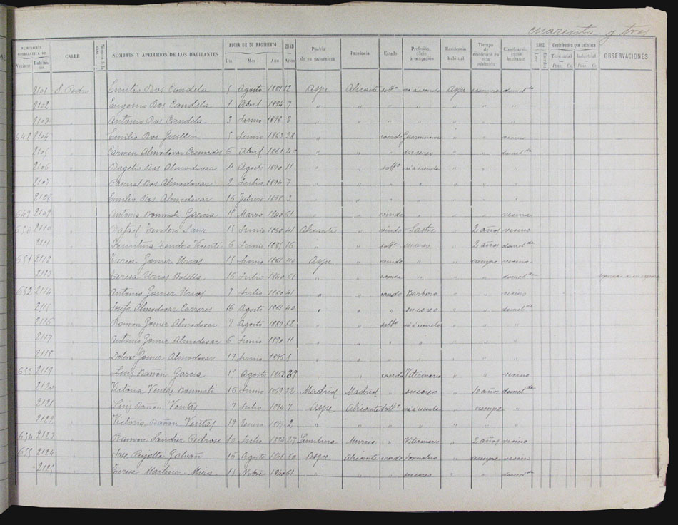 Hojas declaratorias por familias y Padrón de habitantes, 1877