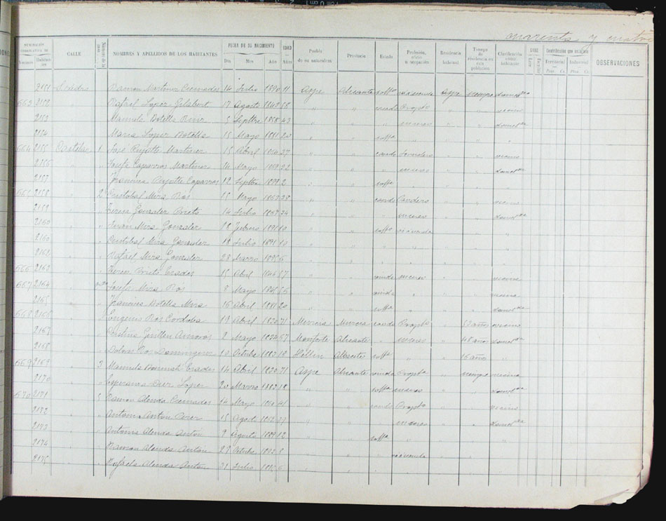 Hojas declaratorias por familias y Padrón de habitantes, 1877