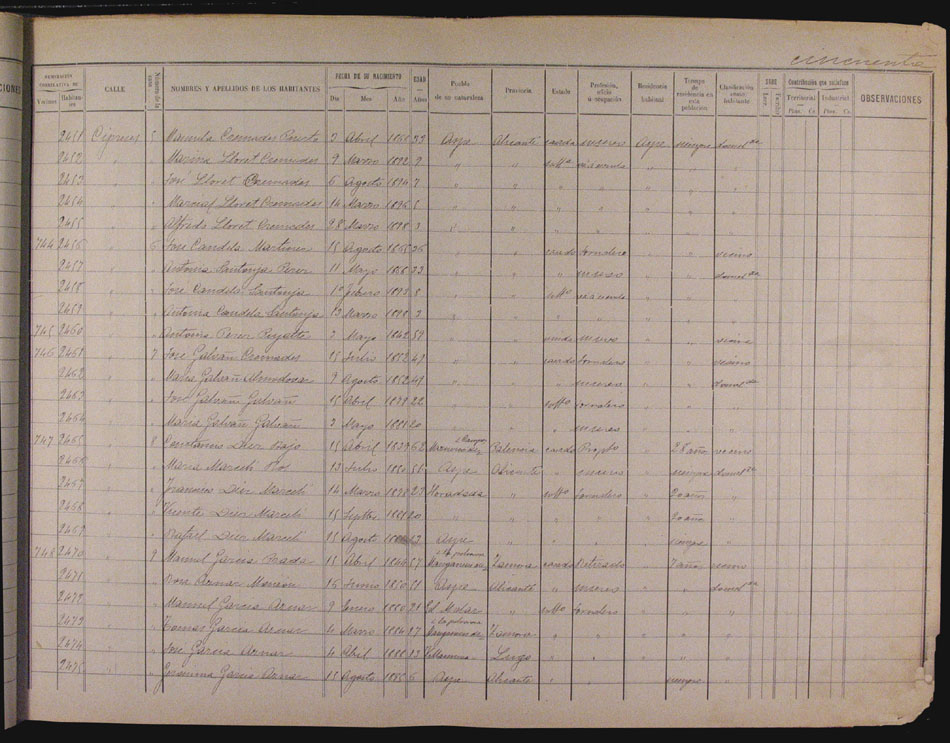 Hojas declaratorias por familias y Padrón de habitantes, 1877