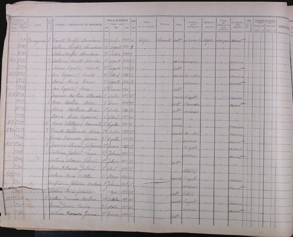 Hojas declaratorias por familias y Padrón de habitantes, 1877