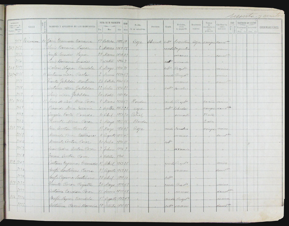 Hojas declaratorias por familias y Padrón de habitantes, 1877
