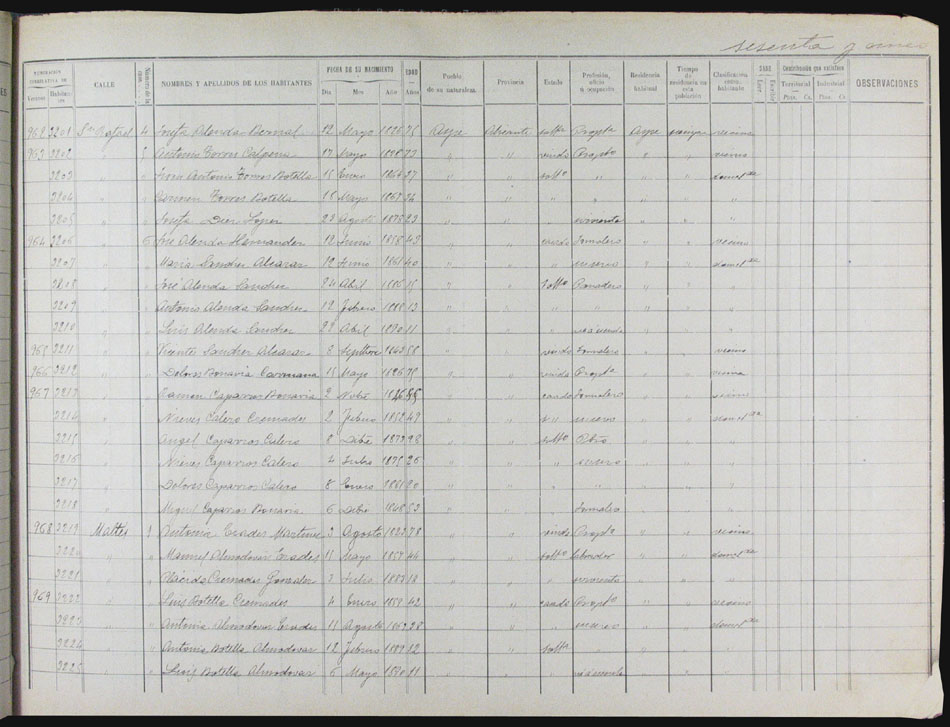 Hojas declaratorias por familias y Padrón de habitantes, 1877