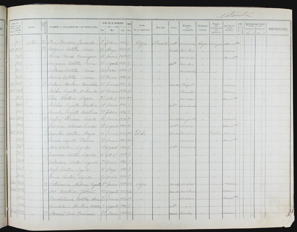 Hojas declaratorias por familias y Padrón de habitantes, 1877