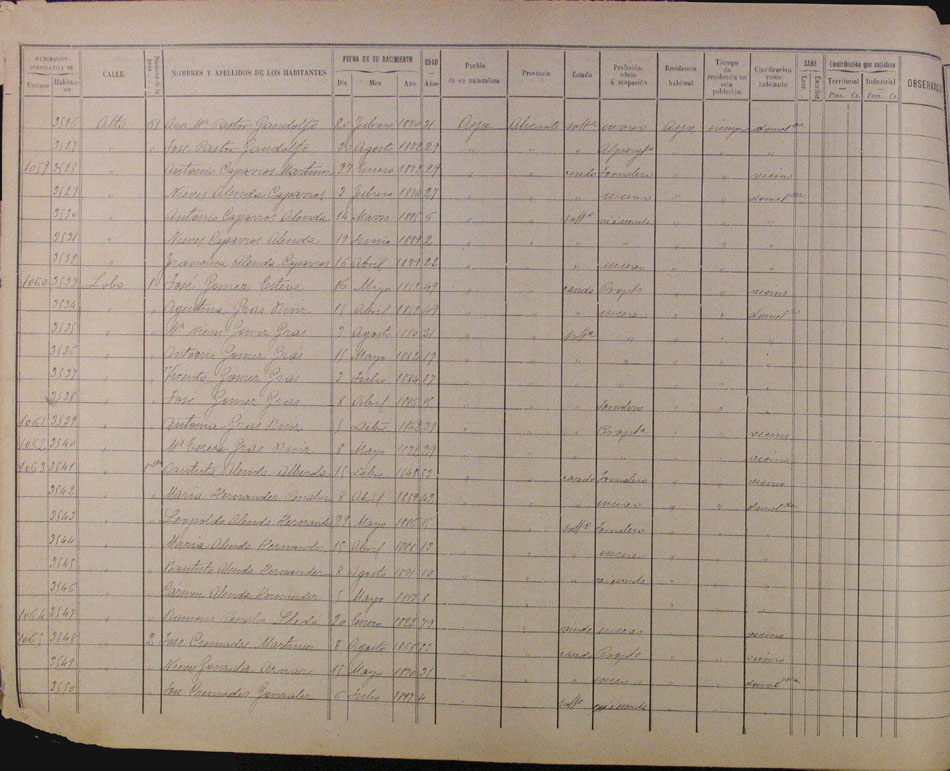 Hojas declaratorias por familias y Padrón de habitantes, 1877