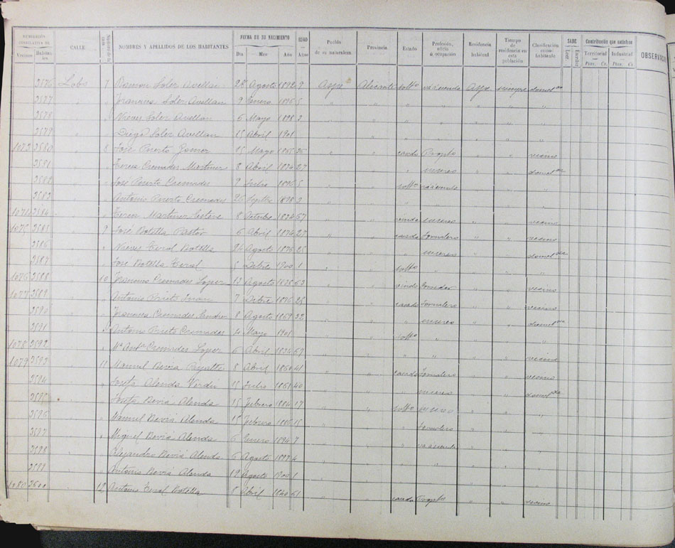 Hojas declaratorias por familias y Padrón de habitantes, 1877