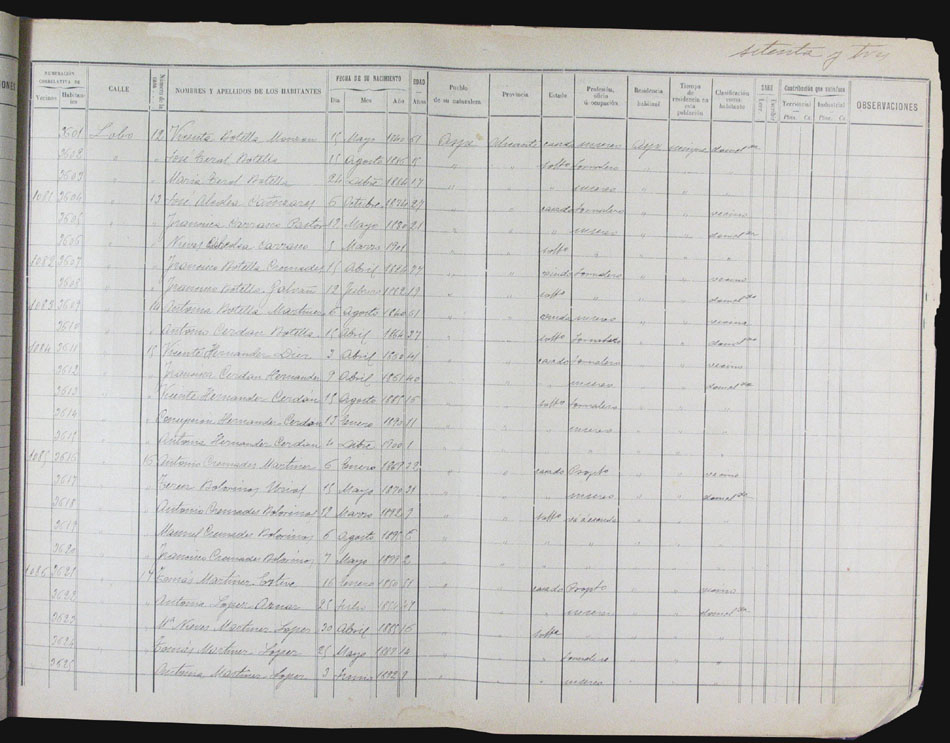 Hojas declaratorias por familias y Padrón de habitantes, 1877