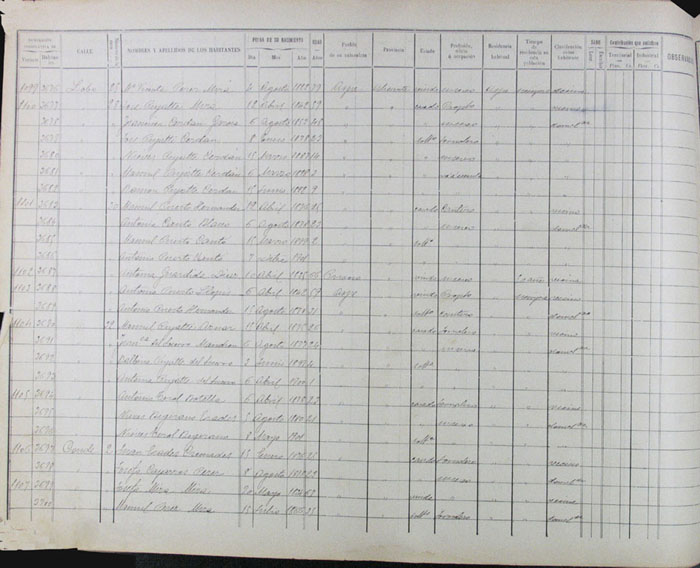 Hojas declaratorias por familias y Padrón de habitantes, 1877