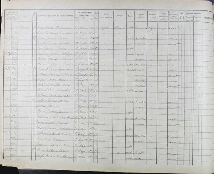 Hojas declaratorias por familias y Padrón de habitantes, 1877