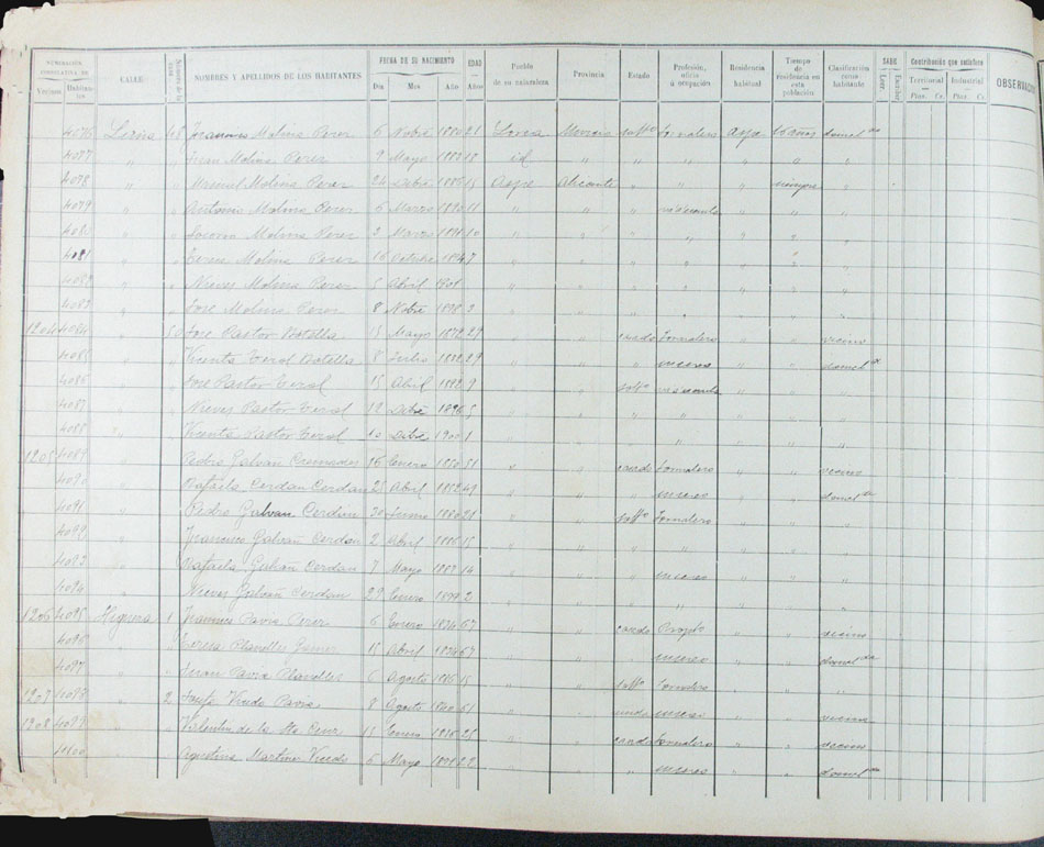 Hojas declaratorias por familias y Padrón de habitantes, 1877