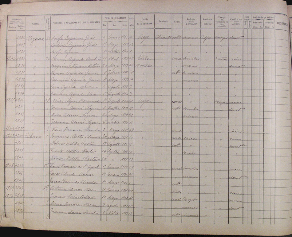 Hojas declaratorias por familias y Padrón de habitantes, 1877