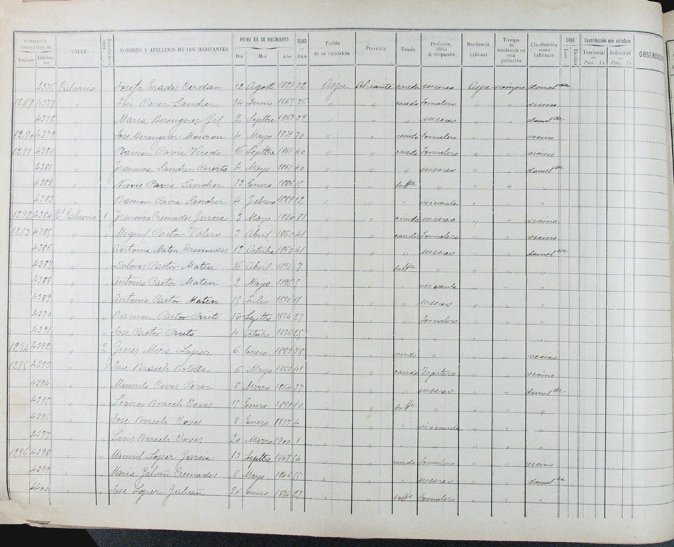 Hojas declaratorias por familias y Padrón de habitantes, 1877