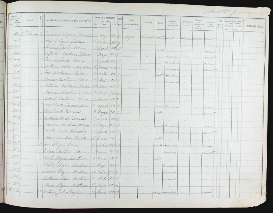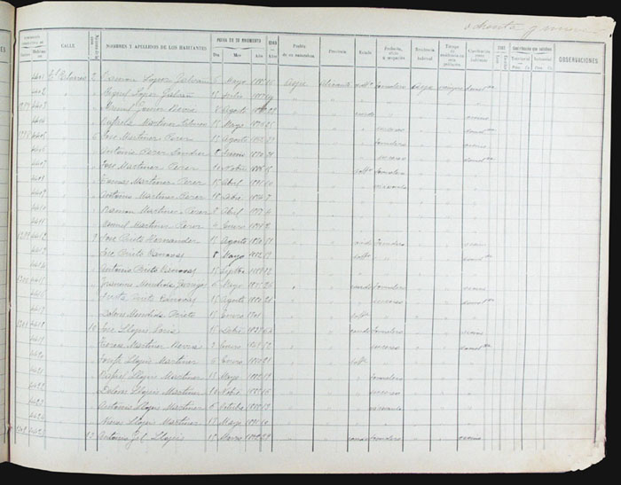Hojas declaratorias por familias y Padrón de habitantes, 1877