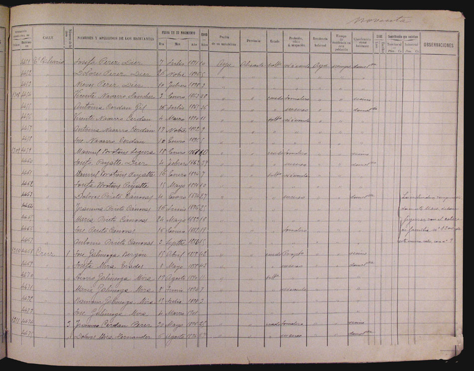 Hojas declaratorias por familias y Padrón de habitantes, 1877