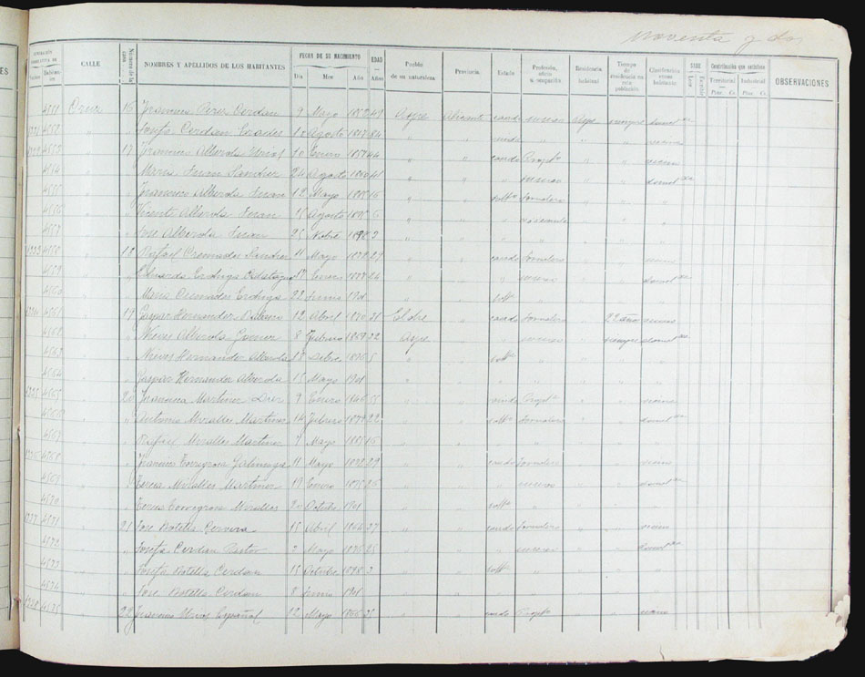 Hojas declaratorias por familias y Padrón de habitantes, 1877