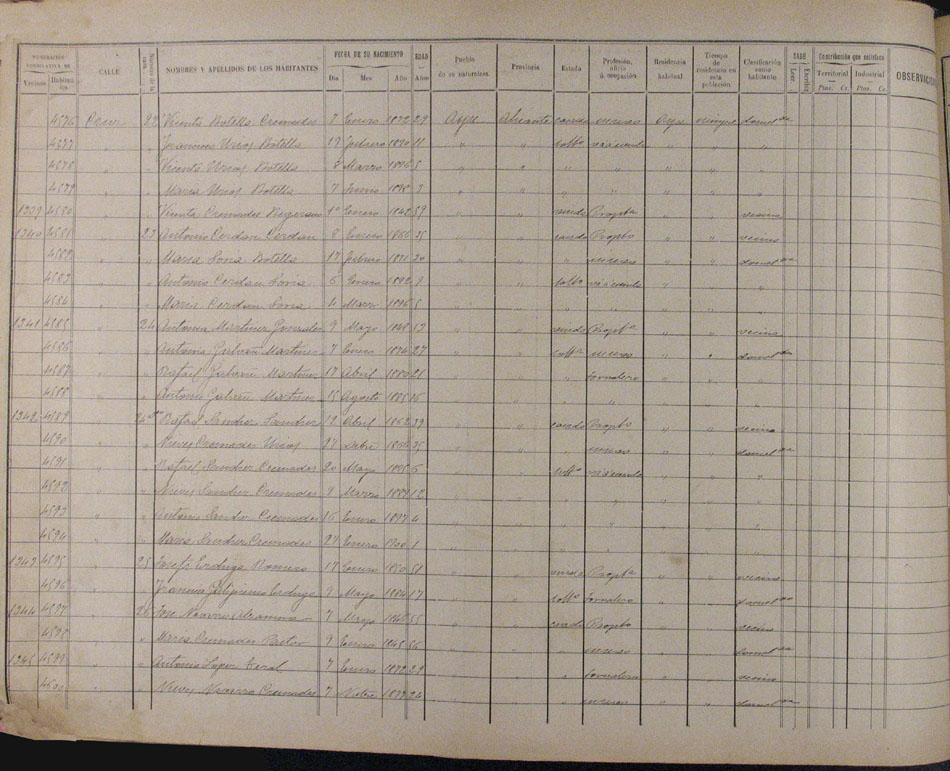 Hojas declaratorias por familias y Padrón de habitantes, 1877