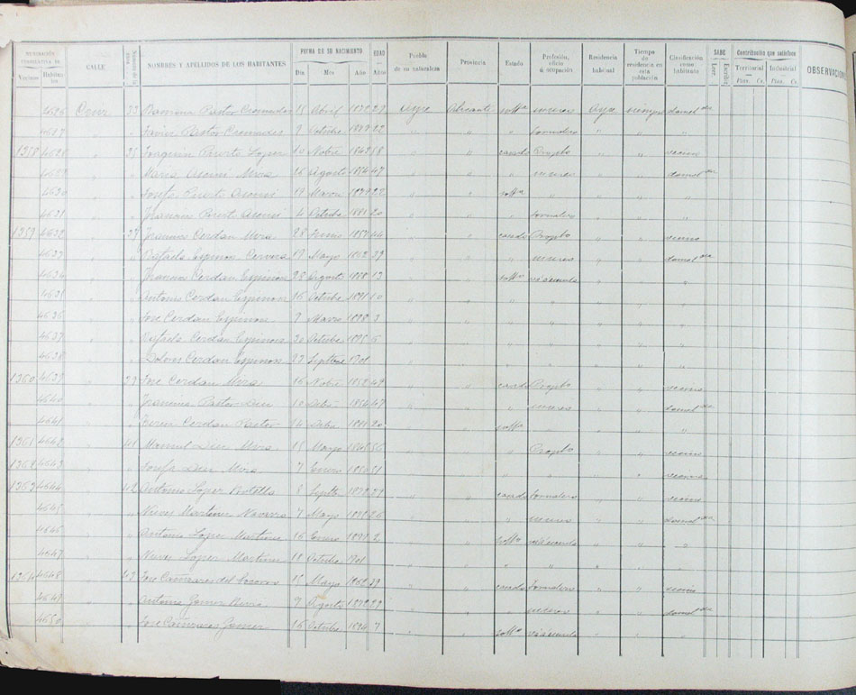 Hojas declaratorias por familias y Padrón de habitantes, 1877