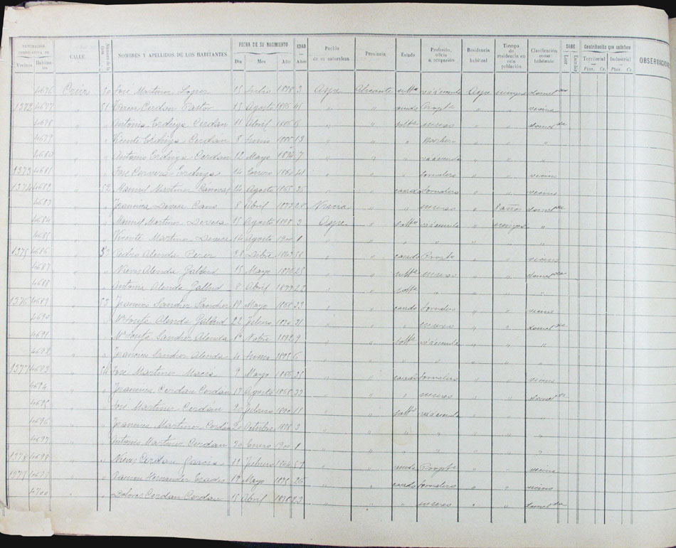 Hojas declaratorias por familias y Padrón de habitantes, 1877