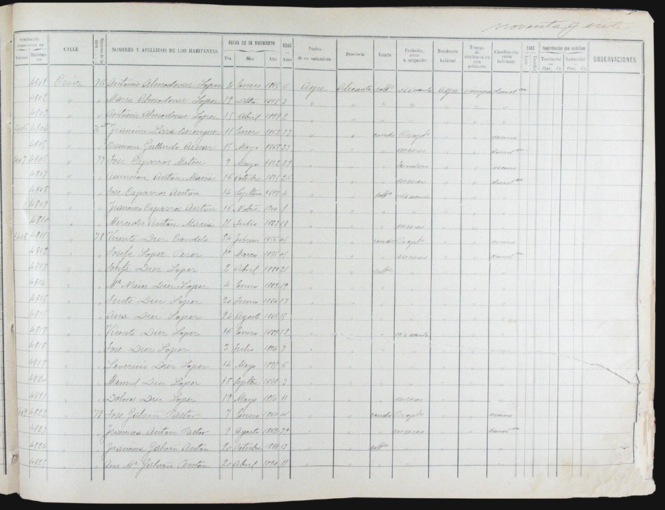 Hojas declaratorias por familias y Padrón de habitantes, 1877