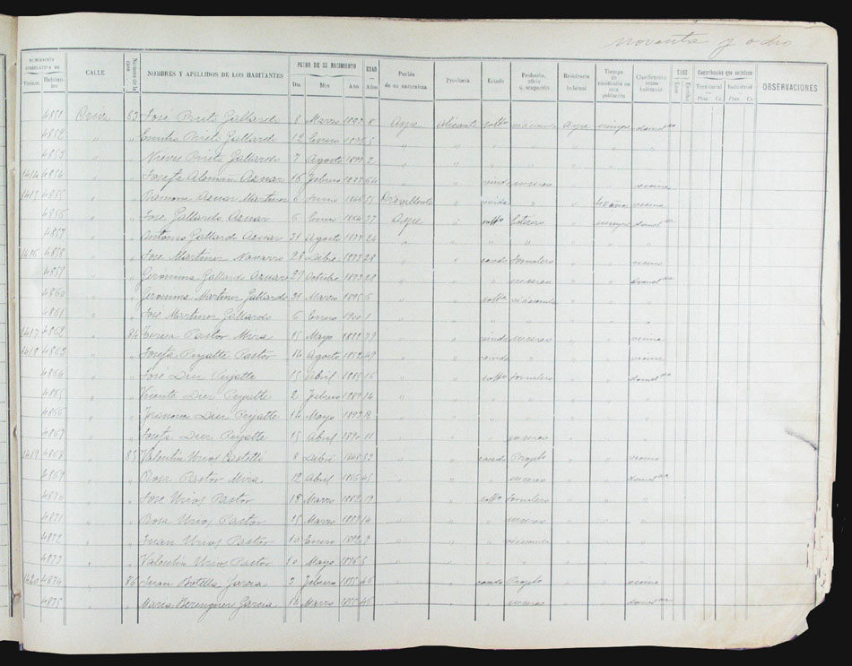 Hojas declaratorias por familias y Padrón de habitantes, 1877