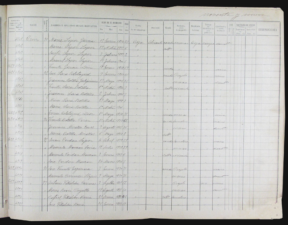 Hojas declaratorias por familias y Padrón de habitantes, 1877