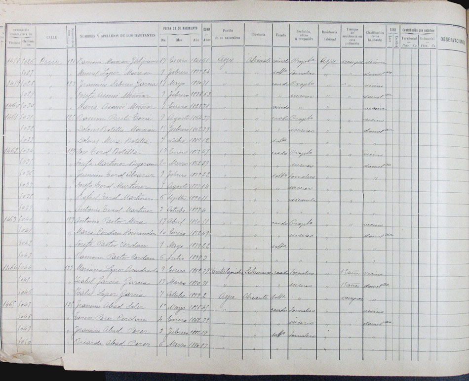 Hojas declaratorias por familias y Padrón de habitantes, 1877