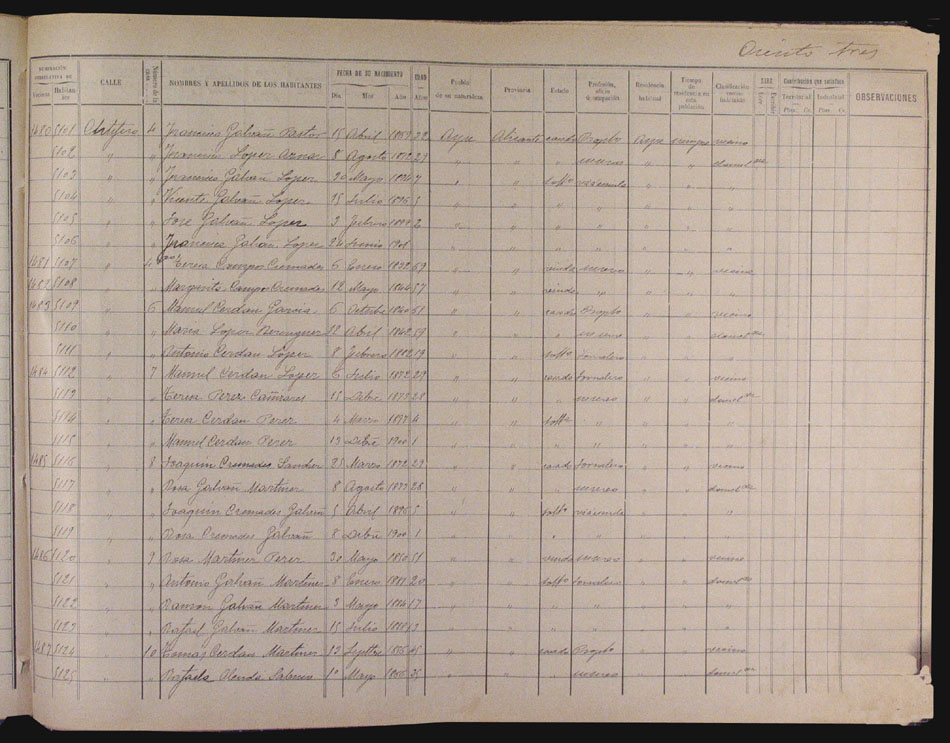 Hojas declaratorias por familias y Padrón de habitantes, 1877