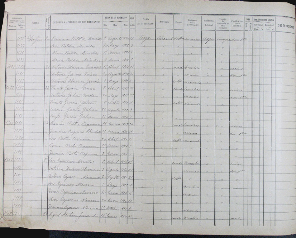 Hojas declaratorias por familias y Padrón de habitantes, 1877